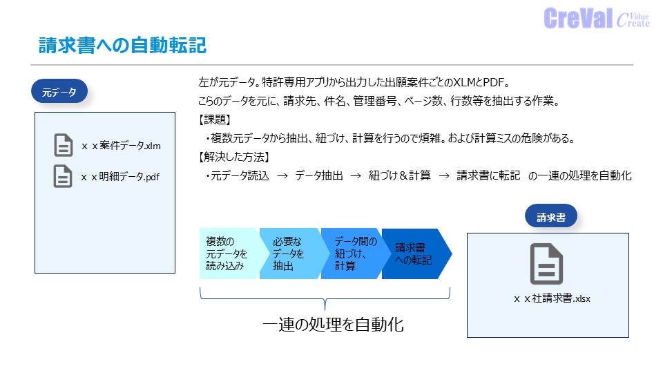 このような悩みをご相談したところ、CSVデータを転記する機能をこのExcelに持たせて頂くことができました。取り込む元となるCSVは様々な書式を持っていましたが、それらすべての書式に合わせて取り込めるように工夫いただきました。何か別のソフトを必要とするわけではなく、Excelに備わっているVBAというもので自動化を実現できることが目からうろこ状態でした。餅は餅屋、Excelはクリーバル様であるとの想いに至りました。